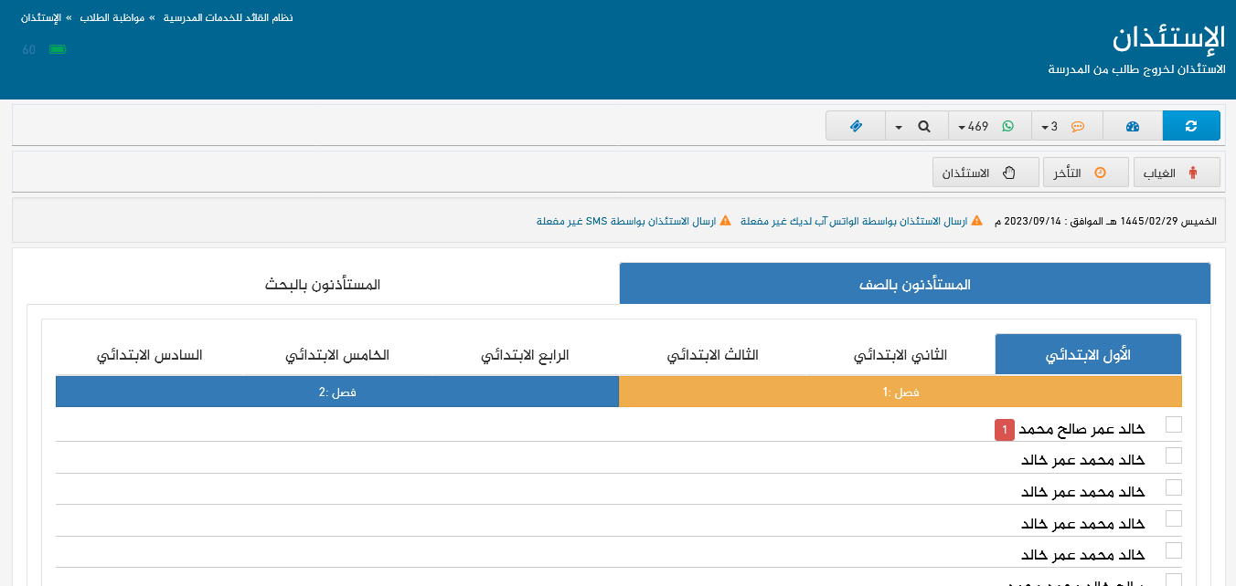 اضافات جديدة في رصد الاستئذان طلاب وعمليات جديدة
