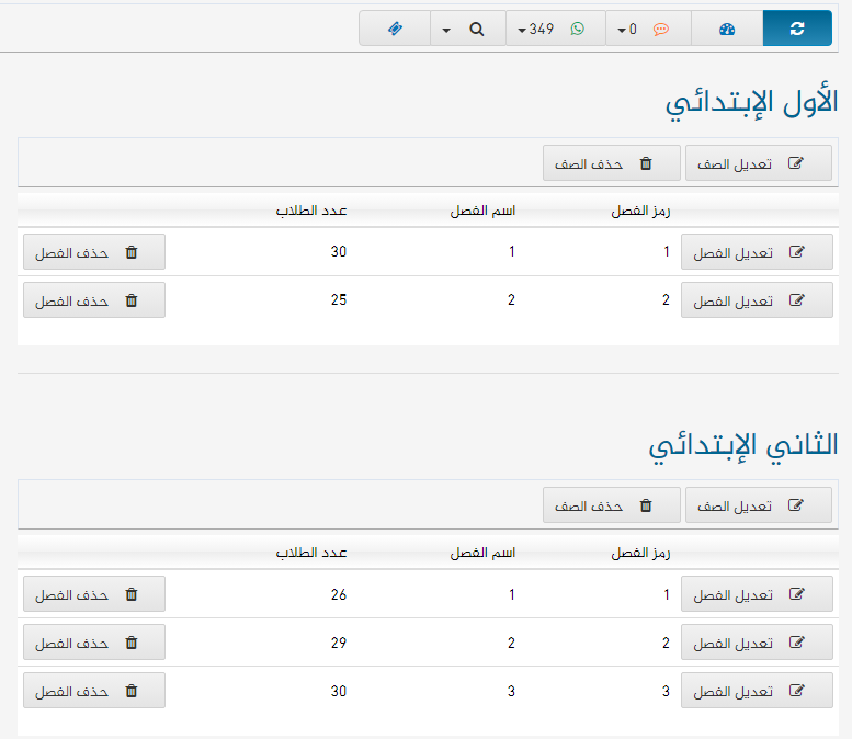 الضبط / اعدادت المدرسة / ضبط الصفوف والفصول